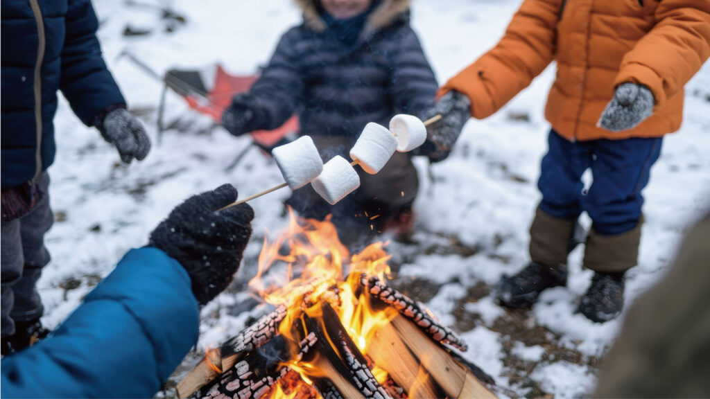 焚き火を囲んで、ほっとひと息。旅の夜に残る、焼きマシュマロの時間。