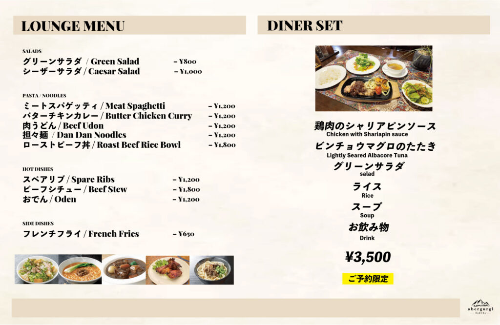 朝食とディナーセットは、チェックイン時(17:00まで)にご注文ください。